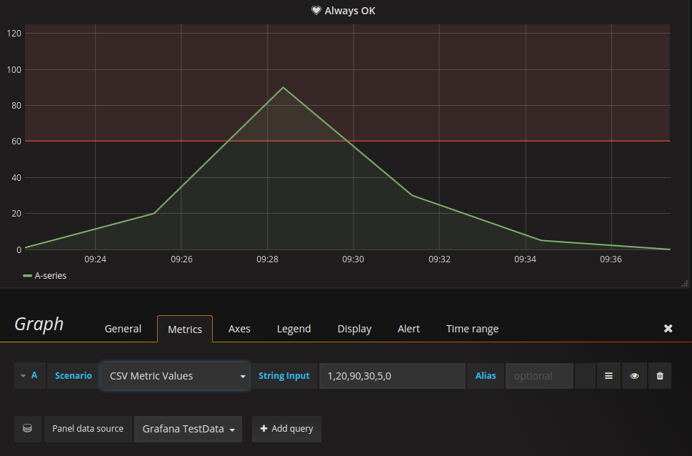 Sobald TestData DB aktiviert ist, können Sie es als Datenquelle in jedem Metrik-Panel verwenden.