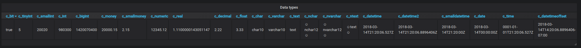 SmartCollect SC² wird mit einem integrierten Microsoft SQL Server (MSSQL)-Datenquellen-Plugin ausgeliefert, mit dem Sie Daten von jedem Microsoft SQL Server 2005 oder neuer, einschließlich Microsoft Azure SQL Database, abfragen und visualisieren können.