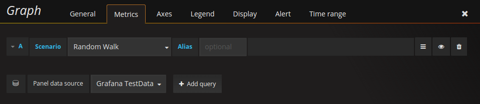 Der Zweck dieser Datenquelle ist es, das Erstellen von Fake Date für jedes Panel zu erleichtern. Mit TestData DB können Sie Ihre eigene Zeitreihe erstellen und sie von jedem Panel rendern lassen. Dies macht es viel einfacher, die Funktionalität zu überprüfen, da die Daten sehr einfach gemeinsam genutzt werden können.