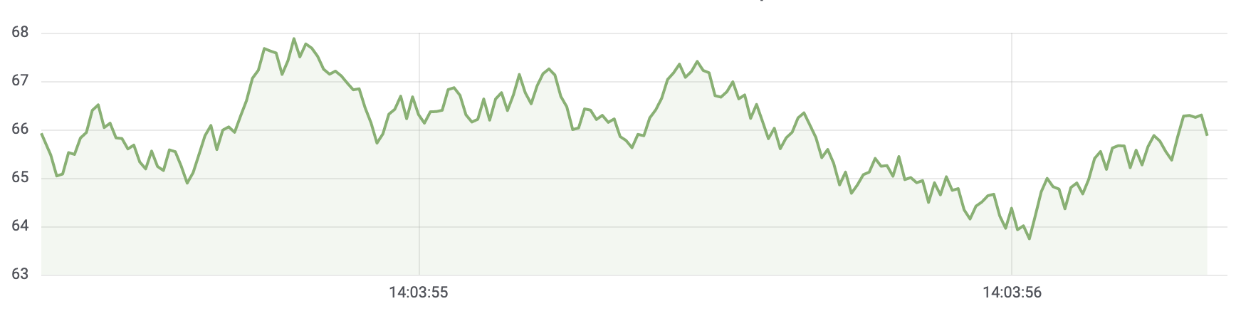 Tabellen sind nützlich, wenn Sie einzelne Messungen identifizieren wollen, aber es ist schwierig, das Gesamtbild zu sehen. Eine gängigere Visualisierung für Zeitreihen ist der Graph, der stattdessen jede Messung entlang einer Zeitachse platziert. Visuelle Darstellungen wie das Diagramm erleichtern die Entdeckung von Mustern und Merkmalen der Daten, die sonst nur schwer zu erkennen wären.